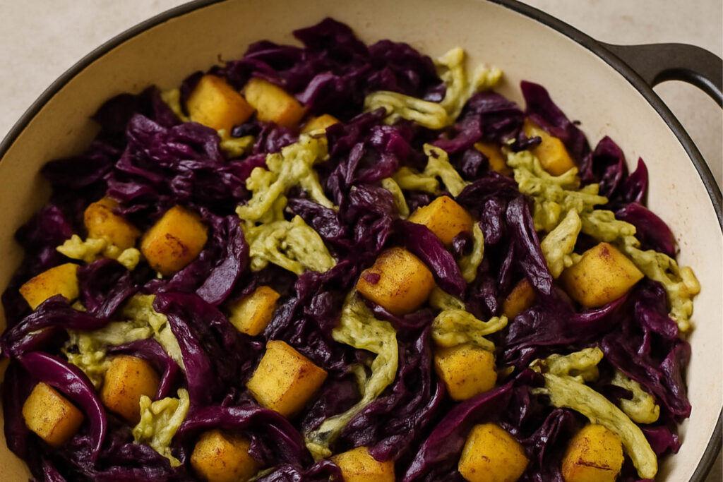 Blaukraut-Chinakohl-Pfanne mit Kartoffeln